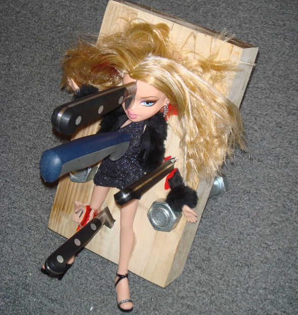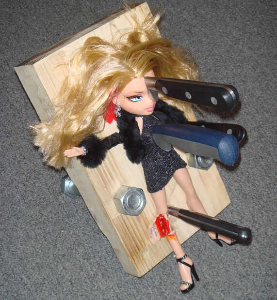 Después de que terminé de trabajar en este proyecto, tuve un tiempo difícil decidir qué tono quería darle el Instructable. Me pregunté "¿Qué pensamientos o emociones muñeca infantil conectada a la parte frontal de un bloque de cuchillo incitar?". Había tantas opciones: creepy, enfermo, ofensiva, estúpido, peligroso, terrible, torcido, censurable, ofensivo... la lista sigue y sigue; sin embargo, al final, decidí que "inquietante" sería la mejor dirección a la cabeza en (pero no preocuparse sazona con pimienta este proyecto con un poco de todas esas opciones, maravillosas). Dicho, si no prefieres ser: creeped hacia fuera, enfermo, ofendido, estúpido, en peligro, horrorizado, torcido, objectionableified (?), distastefuled (también?), o perturbado, le sugiero que deje de leer ahora.
