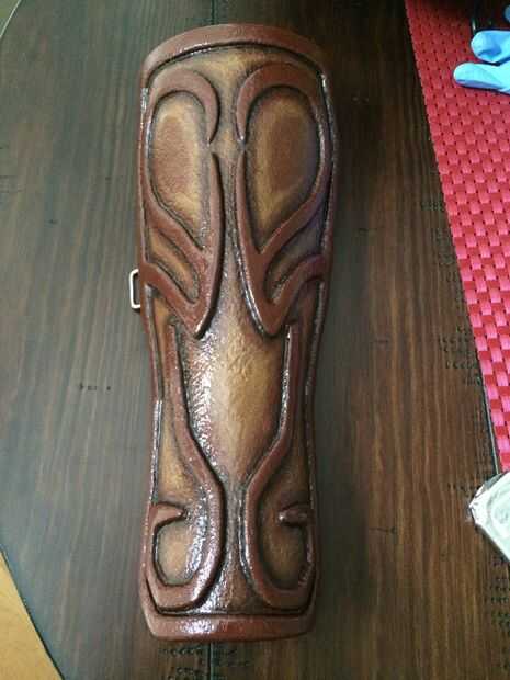 Añadir más destacados para agregar algunos usan patrones para el bracer. Usé más amarillo para aligerar el marrón y darle una diferencia más drástica entre el patrón de desgaste y el marrón. Deje tiempo secar entre capa y capa.