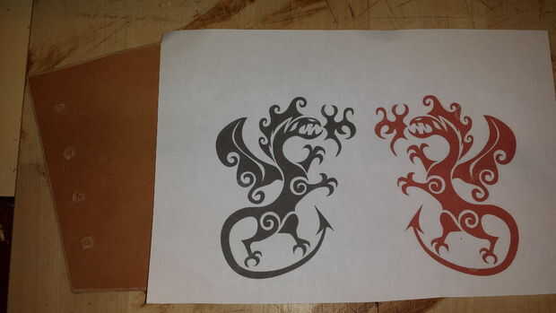 Encontrar un dulce diseño vikingo e imprimirlo en papel. Elegí un dragón porque son impresionantes. Si nunca has tallado y estampado cuero antes de que usted probablemente debería escoger simple. Asegúrese de que lo que se imprime también cabrá en su brazal...