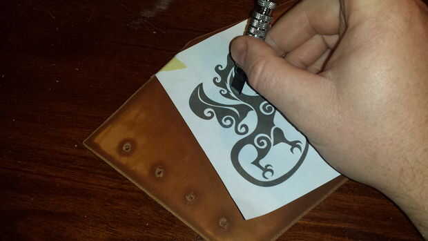 un conjunto de brazales de Gondorian Ranger para los amantes del Señor de los anillos. De crédito a (Instagram) para enseñarme lo básico de cuero!Paso 1: Cut outs Dibujar el diseño sobre el papel, traza sobre la piel y cortar la piel con un bisturí.