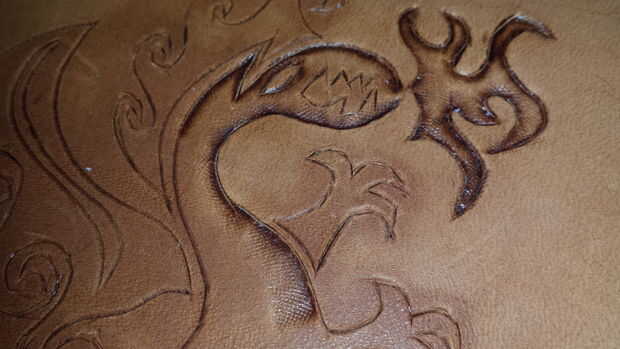 Teniendo las herramientas de estampado pequeño y la goma mazo Inicio compactación en los bordes interiores del diseño. Probar varias herramientas para obtener las texturas que desee.