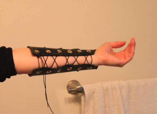 Quise Brazales de cuero, pero no quiero pagar precios de sujeción de cuero. Espuma de artesanía es una solución asequible.Suministros• Arte de la espuma de 12 "x 18" y 1/16" espesor• Interconexión• Mancha de madera• Barniz• Ojales, 1/4"