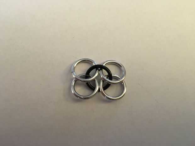 Empezar cerrando 4 anillos y ponerlos en un anillo abierto.