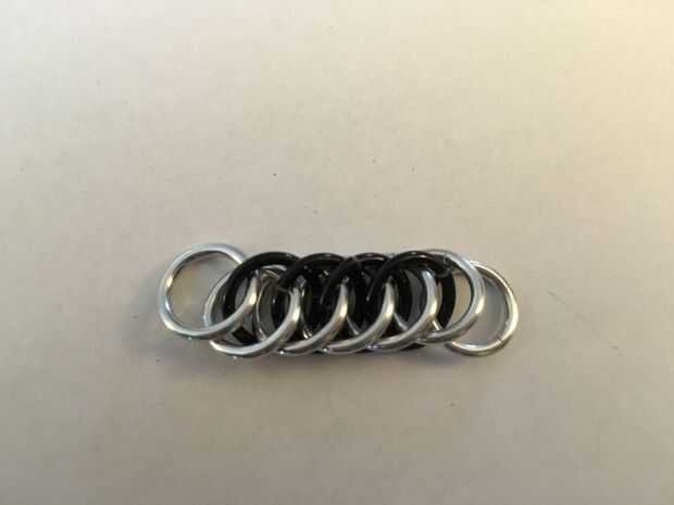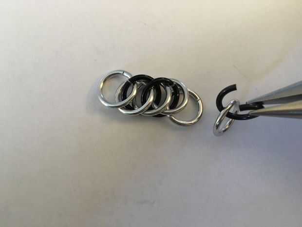 por lo que me estaba poniendo realmente a hacer cosas de cota de malla. Joyería, keychainhangers, camisetas, pulseras y collares se podrían encontrar en este sitio. Lo único que no pude encontrar fue una cofia de cota de malla.Así que hice algunas in