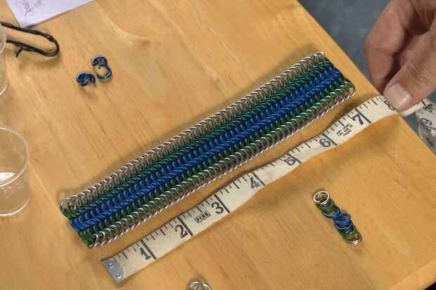 La mejor manera que encontré completar esto fue rizar la pulsera que será cuando haya terminado y uno de los últimos anillos de metal. Empuje el anillo a través de los dos últimos anillos de finales y 1 anillo en el lado a. Cerca de este anillo, luego tomar otro anillo metal y completar la misma columna. Empuje a través del último anillo de goma y los dos primeros en el lado de Unión. Debe obtener un poco más fácil de aquí en adelante como la pulsera estará permanecer juntos debido a la primera columna.