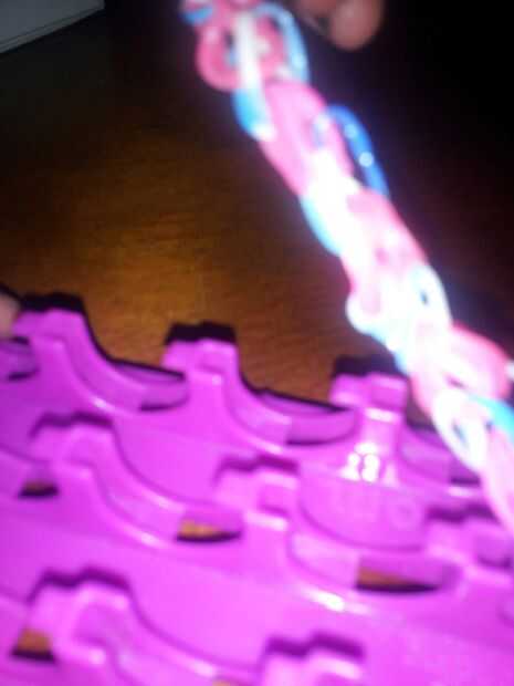 Paso 1: materiales 1 telar, 1 gancho, bandas y un broche. Asegúrese de que su telar tiene la flecha apuntando lejos de usted.Paso 2: patrón Poner una banda (primer color) abajo de la media a la izquierda. Entonces hacerlo a la derecha, izquierda dere