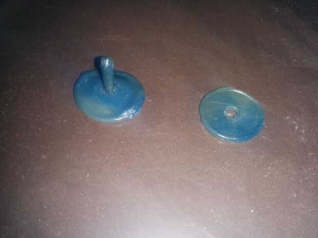 Luego calienta un destornillador y hacer un orificio en ambos de los discos (haciendo que se vean como las arandelas) y también en la banda y en el marco de makey makey. También de heridas utilizando unos alicates de punta que también calienta hasta para hacer el agujero en el makey makey y en uno de los discos