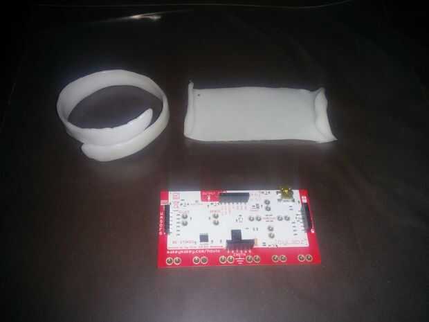 Formar es bastante simple, sumergió a los extremos del rectángulo grande en agua caliente (en mi olla, usted podría sólo microondas un recipiente con agua también) hasta que fue semi claro. y entonces sólo doblé hacia arriba sobre los lados del makey makey (opté por dejar la parte de atrás del tablero sin cubrir porque la mayoría de mi interfaz de guantes (y el módulo de bluetooth cuando me preparo) plugin en la parte posterior
