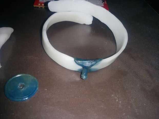 Calienta la cabeza de la ghumbtackuntilit fue flexible y penetra a través del interior del brazalete, empujando hacia afuera, luego doblé el resto de la cabeza de la "tachuela" alrededor de la banda para anclarla en su lugar y déjalo enfriar