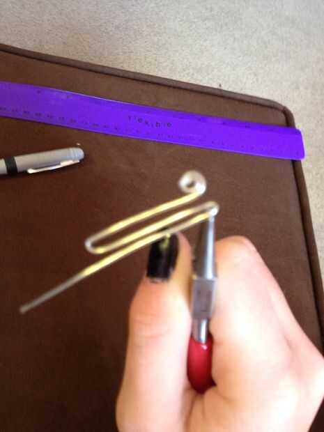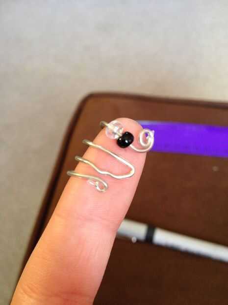 Para comenzar el brazalete, cortar 5" pedazo de alambre. Use sus alicates de punta redonda para enrollar los extremos en está en uno mismo para crear una espiral. Subir alrededor de una pulgada y curva el alambre detrás Repita este 3 veces. Usted debe obtener algo que se ve como una forma de w o m. Antes de cerrar el otro extremo puede agregar algunas perlas de colores si quieres. Finalmente cerca del otro extremo usando la técnica de espiral como hiciste antes. Ahora para crear la forma redondeada para adaptarse a la oreja. Doble el manguito alrededor de una pluma o algo redondo que se asemeja el tamaño de su oreja. Y tadaaa!!! Su propio brazalete de oído que hiciste a ti mismo!