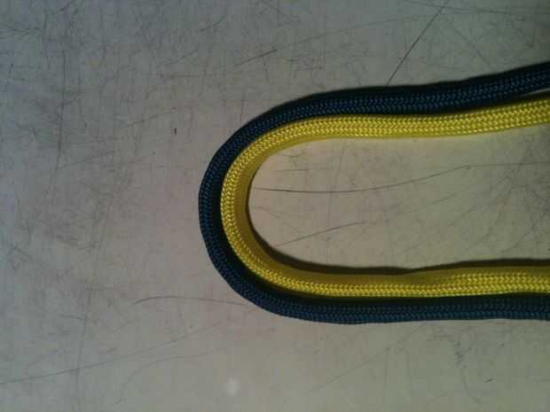 En este instructable se está haciendo referencia a los cables por su color. Comienzan alineando sus cuerdas como se muestra en la foto a continuación con el cable amarillo por debajo el cable azul y el centro de las cuerdas en la cima del arco iris.