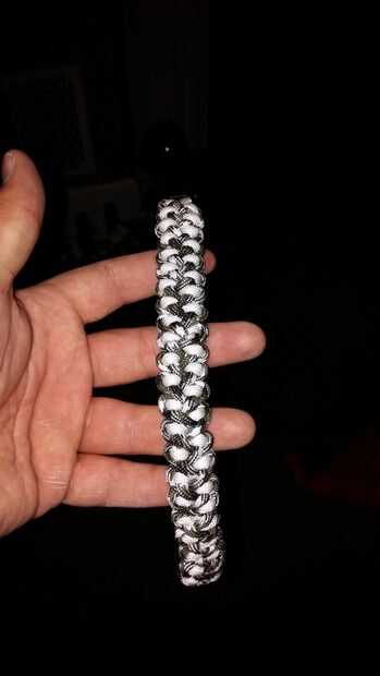 Cómo hacer un brazalete de Paracord King Cobra. La primera parte es igual a la pulsera del Paracord de Cobra, pero utiliza unos 18 pies de Paracord. Haga clic en instrucciones de la pulsera del Paracord y hacerlas primero pero no cortan el paracord.