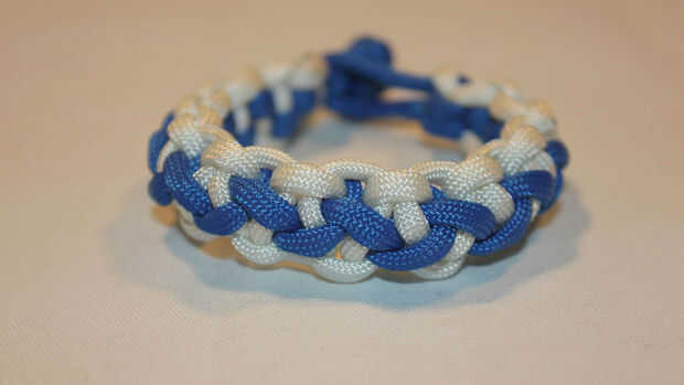 Cómo hacer un brazalete de Paracord King Cobra. La primera parte es igual a la pulsera del Paracord de Cobra, pero utiliza unos 18 pies de Paracord. Haga clic en instrucciones de la pulsera del Paracord y hacerlas primero pero no cortan el paracord.
