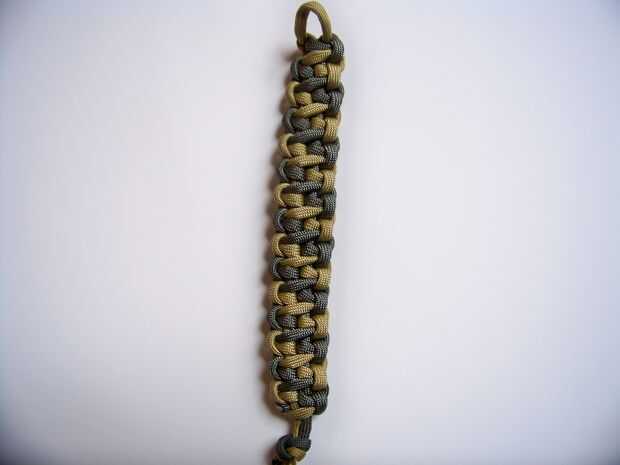 He utilizado dos 5 cordones de oro y gris paracord para obtener un concepto de camuflaje de pie.