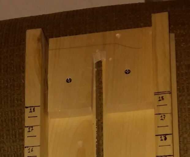 Utilizando una regla o cinta métrica, en el carril a partir de su pieza superior, marcan sus medidas. He marcado cada media pulgada.