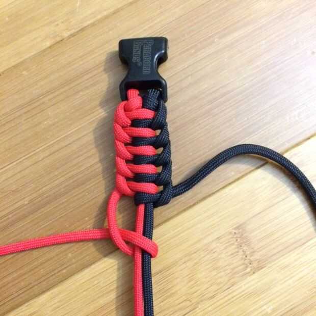 Cómo hacer un brazalete de Paracord King Cobra. La primera parte es igual a la pulsera del Paracord de Cobra, pero utiliza unos 18 pies de Paracord. Haga clic en instrucciones de la pulsera del Paracord y hacerlas primero pero no cortan el paracord.