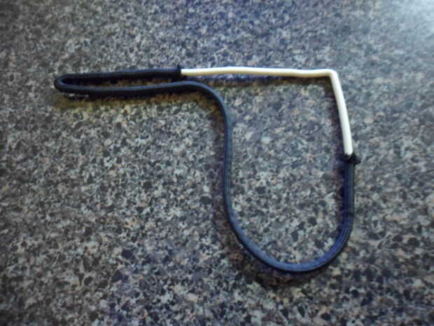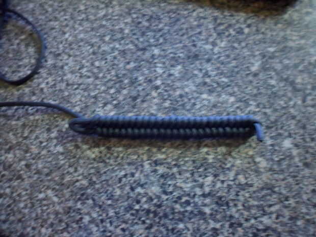 Todo lo que necesita para esto es de 80 a 90 pulgadas de paracord, un pedazo de 10 calibre alambre aislado de cobre sólido 13 a 16 pulgadas de largo, cortador de alambre, navaja y encendedor.