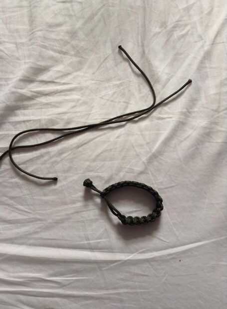 Una vez que tienes el nudo hecho te vas a querer cortar los cabos sueltos (sólo asegúrese de que el nudo está en punto donde son todavía capaces de tirar la pulsera en la muñeca), hacer esto con un par de tijeras o un cuchillo, sólo ten cuidado porque puede ser fuerte!