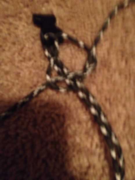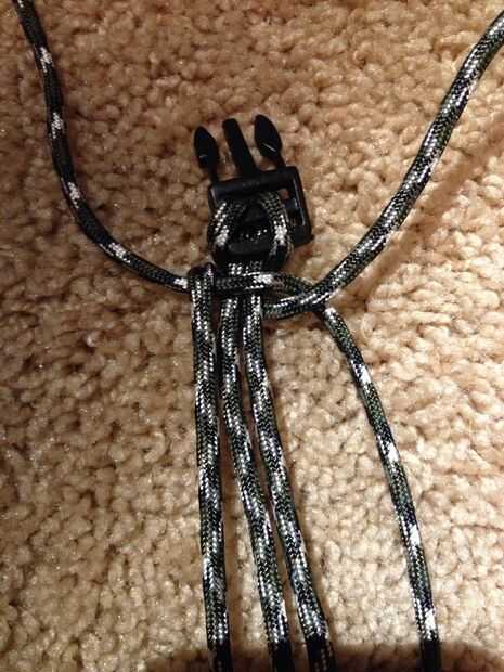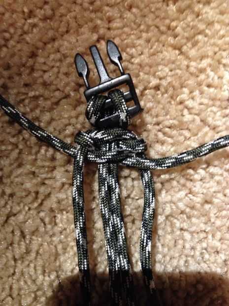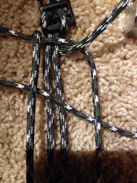 U tomar el cable que va hacia arriba y se pasa bajo el primer cable, sobre las dos siguientes y en la última de ellas entonces u tomar el otro cable e ir con el primer cable, bajo los siguientes dos y cruzar el otro, con el cable pasado Tire firmemente y empuje hacia arriba de reapeat hasta el otro extremo