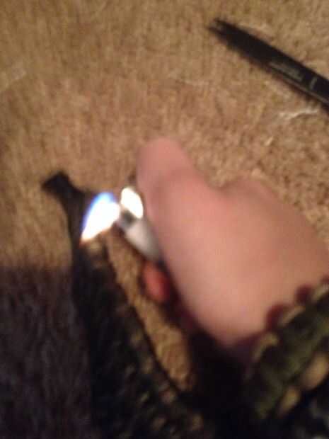 Aprender cómo hacer un brazalete de Paracord King Snake. Usted necesitará unos 12 pies de paracord y una hebilla de paracord. También consigue unas tijeras y un mechero.Paso 1: Rey serpiente brazalete de Paracord - 1Tomar la primera pieza de paracord