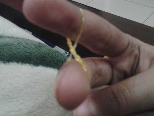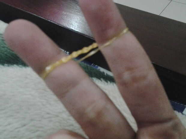 colocar una banda de goma (trenzado o infinity firmar 8) a su índice y medio