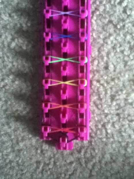 Esto es una pulsera de telar fácil que se hace en un telar del arco iris.Esto podría ser el patrón de escalera pero no agregue bandas en la fila media peg. Este es mi primer tutorial en un telar del arco iris.Mi último tutorial: (Espina de pescado)Co