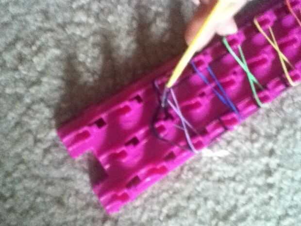 Giro de chicloso o pulsera del infinito en el telar del arco iris