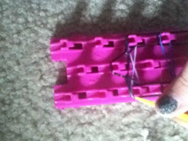 esta es una de las primeras pulseras que aprendí en mi telar. Cantidades pueden variar en diferentes telares.Paso 1: materiales You will need:Banda 26 de fuera20 bandas para escalera12 para la mediaSegún bandas de tamaño de muñecaTelarGanchoClipPaso