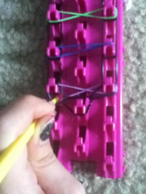 Giro de chicloso o pulsera del infinito en el telar del arco iris