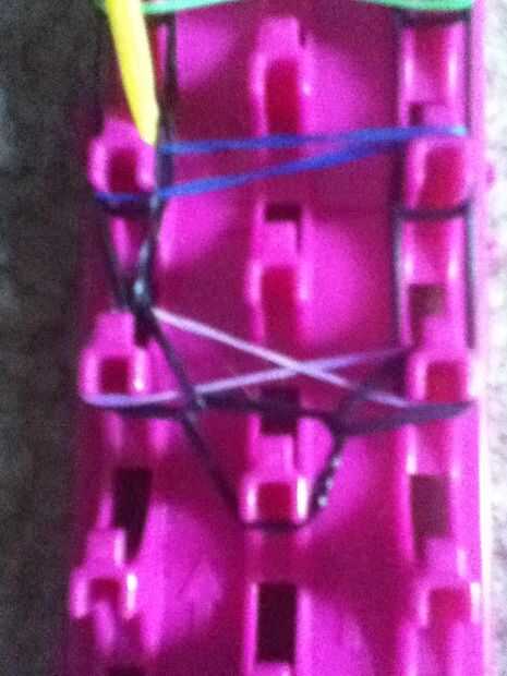 esta es una de las primeras pulseras que aprendí en mi telar. Cantidades pueden variar en diferentes telares.Paso 1: materiales You will need:Banda 26 de fuera20 bandas para escalera12 para la mediaSegún bandas de tamaño de muñecaTelarGanchoClipPaso