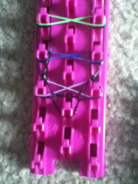 esta es una de las primeras pulseras que aprendí en mi telar. Cantidades pueden variar en diferentes telares.Paso 1: materiales You will need:Banda 26 de fuera20 bandas para escalera12 para la mediaSegún bandas de tamaño de muñecaTelarGanchoClipPaso