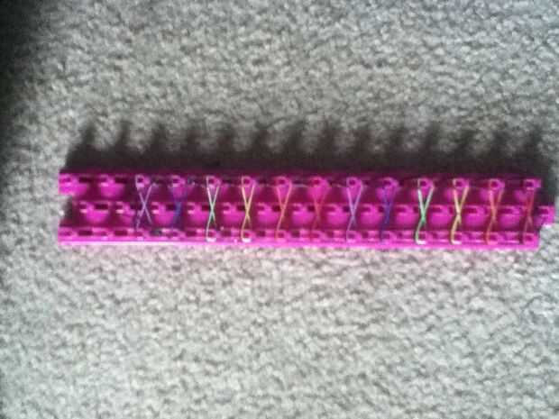 Mi hermanita le encanta su telar del arco iris y haciendo pulseras y cosas en su telar. Tiene una caja llena de bandas de colores. Miré a su telar y parece bastante sencillo así que decidí construir mi propio telar de K'NEX piezas. He intentado hacer