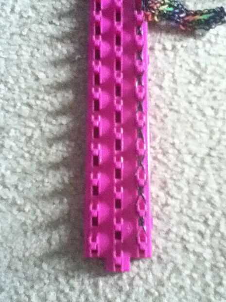 Mi hermanita le encanta su telar del arco iris y haciendo pulseras y cosas en su telar. Tiene una caja llena de bandas de colores. Miré a su telar y parece bastante sencillo así que decidí construir mi propio telar de K'NEX piezas. He intentado hacer