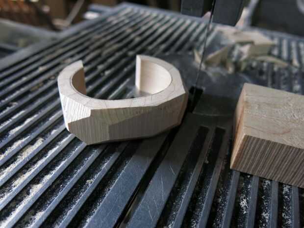 Utiliza la sierra otra vez para cortar trozos de la 'cara' de la pulsera para darle esa sensación geométrica.