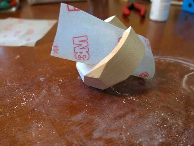 Una vez que he terminado con la lijadora de mesa que cambio a granos más finos como 220 y 320. Usando un bloque de lijado o un trozo de madera con papel de lija envuelto alrededor de él funciona muy bien para ayudar a mantener los ángulos afilados.