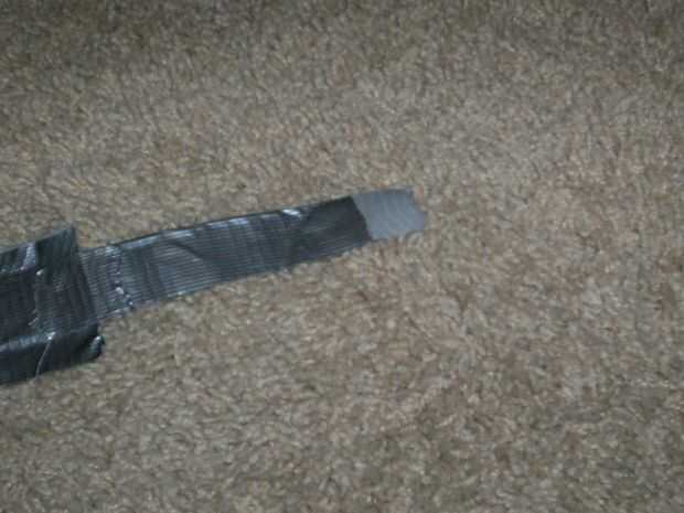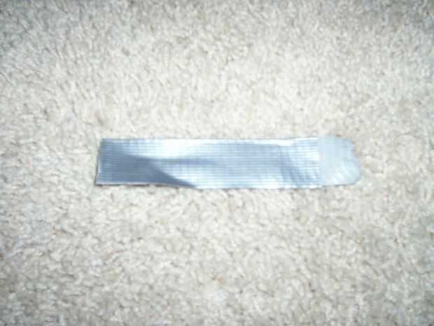 Bueno cuando eso se hace, doblar la mitad más corta sobre la mitad más larga, una vez que lo ha hecho debe haber parte pegajosa todavía descubierto. (ver foto 2) Hacer esto con ambos trozos de cinta.