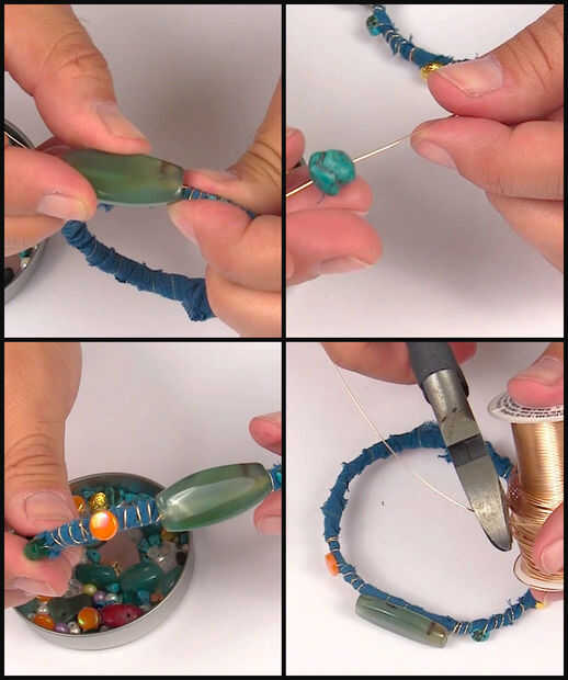 Continúe envolviendo y agregar granos de todo el camino alrededor de la pulsera