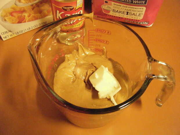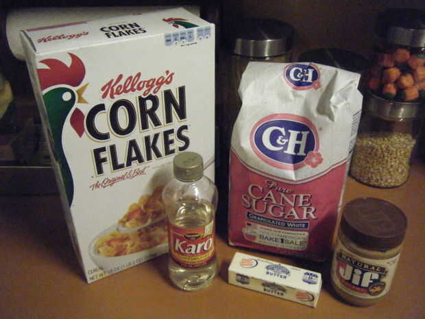 Este es un instructivo que explica cómo hacer deliciosas galletas de mantequilla de maní Cornflake!Paso 1: Ingredientes:1 taza de azúcar1 taza de Karo1 y 1/4 tazas de mantequilla de maní6 tazas de copos de maízPaso 2: Azúcar añadir Karo en una olla d