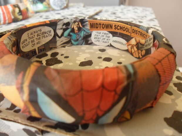 todo esto empezado cuando vi brazaletes plástico en Miguel por $1.00. Recogí un poco y dejarlos reposar en una caja un rato. Hasta que una idea me sorprendió jugando con trozos de papel. Este es con temática pirata. Planeo hacer a otros, ya que estos
