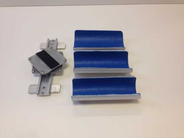 - Tome la 3 "x 1" pieza de 3 M Dual Lock y aplicarlo a la mitad de los 1/16" pedazo de acrílico