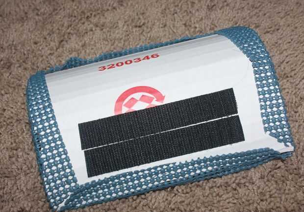 Idealmente, podría usar Velcro lazo-pegajoso-back para el inmovilizador y gancho de coser Velcro para las correas (o viceversa), pero todo lo que tenía era pegajosa espalda y sujetacables de Velcro. Más bien habría expuesto gancho de Velcro que una larga franja de adhesivo desnudo.