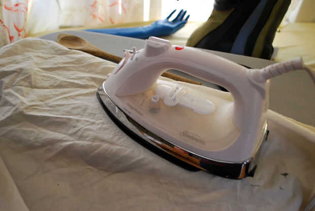 Cuero extraño reacciona al calor y al vapor, sobre todo si se ha teñido y tratado. Puede reducir, quemar o se arrugan para arriba y puede resolverse bien. Lamentablemente no hay ninguna manera de garantizar cómo se comportará. La mejor apuesta es probar primero la plancha sobre un trozo de cuero y un paño de la prensa. De esa manera sólo está arruinando chatarra.
