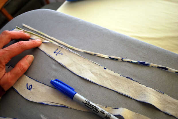 Las piezas de la muñeca parecían podrían confundirse, por lo que he añadido unas cuantas muescas antes de cortar hacia fuera. ¿Se parece a un montón de muescas, derecho? Mientras que resultó, no añadir lo suficiente. Después de cortar cada pieza, he comprobado para asegurarse de que los bordes y ranuras emparejado para arriba. Entonces decidí qué secciones poner juntos primero. Elegí empezar con las piezas 5 y 6, 8, 9 y 10. Añadir pieza 7, puesto que era una pieza sólida que se extiende de arriba hacia abajo. El plan era cosa esta sección entera para las 4 primeras piezas.