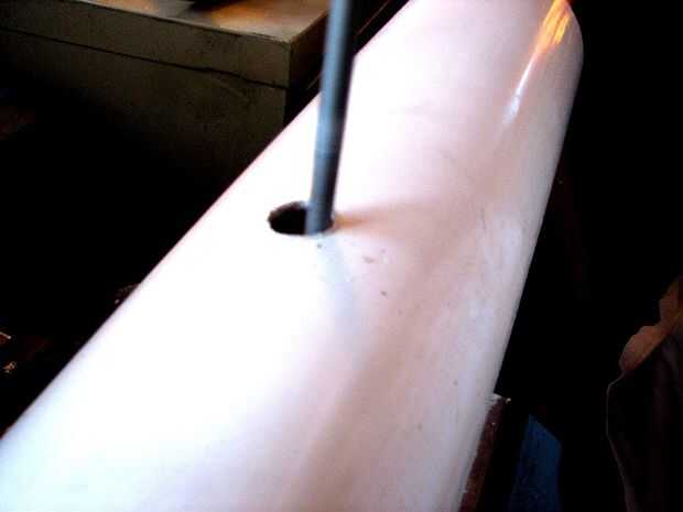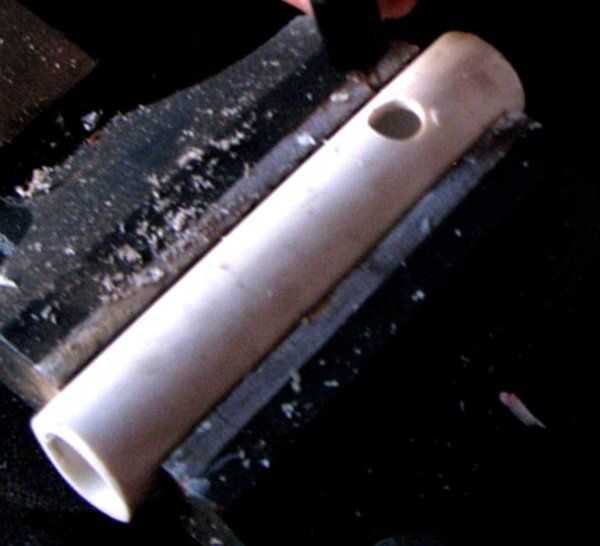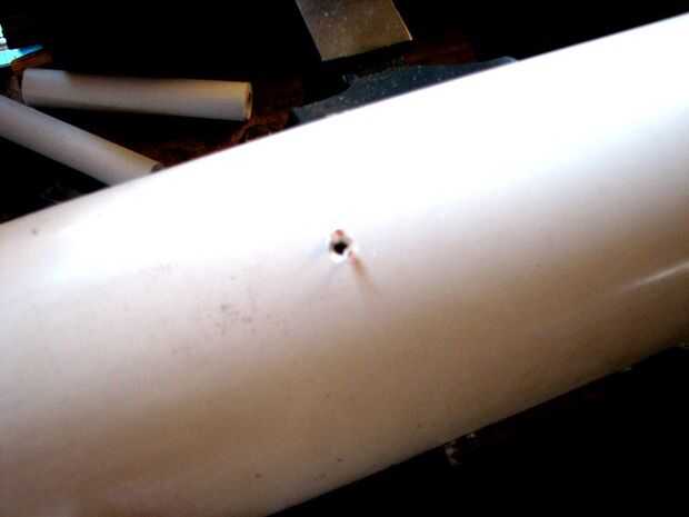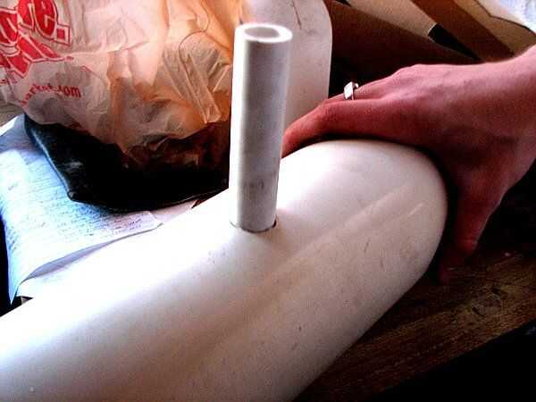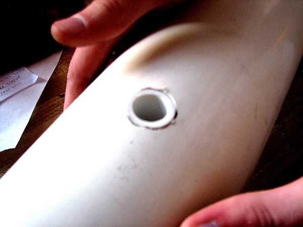 Deslice el asa en el tubo de mayor diámetro en el agujero que perforó antes. Pegamento en lugar con pegamento o epoxi y dejar establecido. Asegúrese que los agujeros y abren las vías respiratorias para el cableado.
