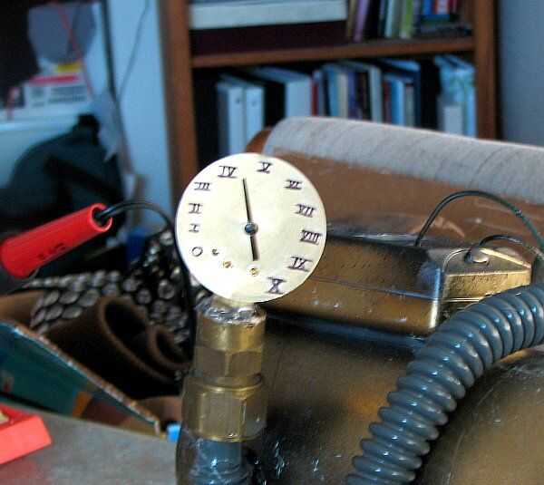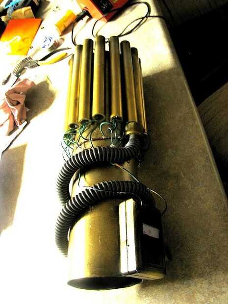 Tome la manguera y envuélvalo alrededor del arma. Me ha recordado una boquilla en el láser, para que se vea como alimentaba las balas a través de esa manera. La otra boquilla no dobla bastante en la caja de batería como quería, por lo que recibió en su lugar un manómetro.