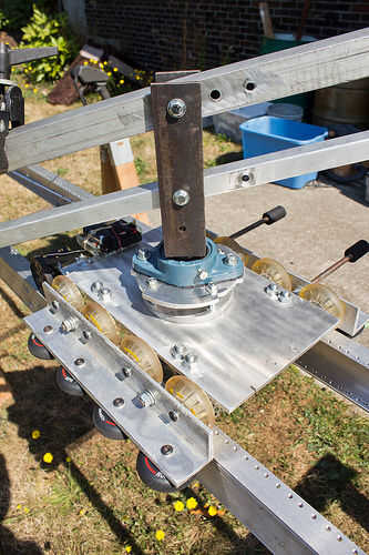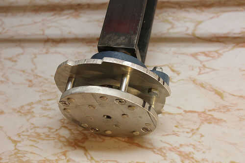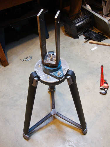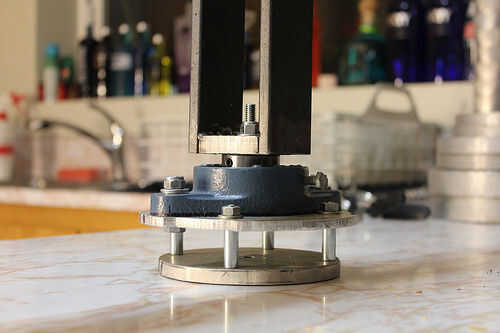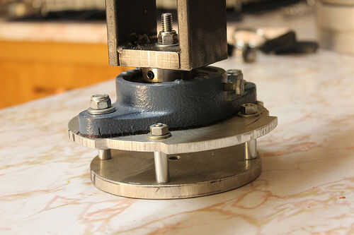 -2 placas de aluminio redondo 3/8" conectadas por separadores, la placa inferior cuenta con rosca para el trípode, el bloque de almohada los pernos a la placa superior,