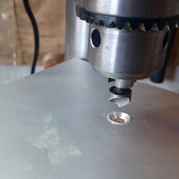 Utilice la herramienta del taladro especial para ajustar el perno al ras con la placa base.