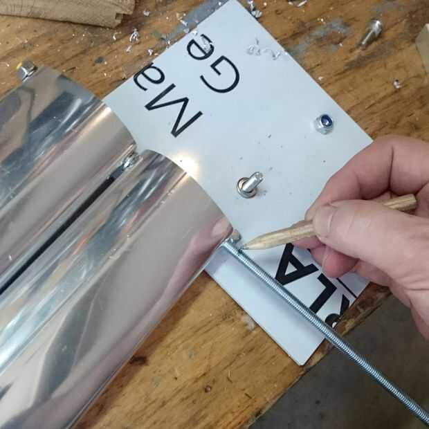 - Marca en la parte larga, 7 cm de un lado (menos de la mitad de la placa base) y perfore un agujero de 6 mm