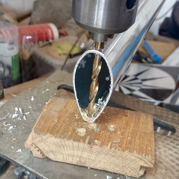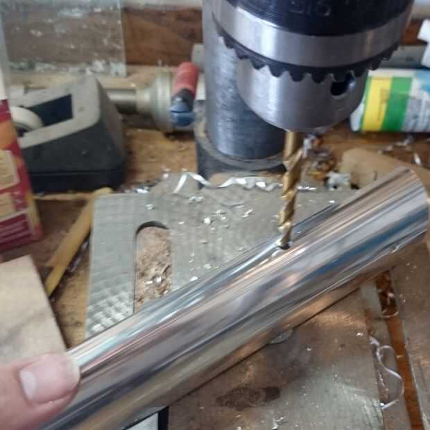- Taladro de 6 mm agujero a través de todo el camino en el tubo corto, de 1 cm de un extremo
