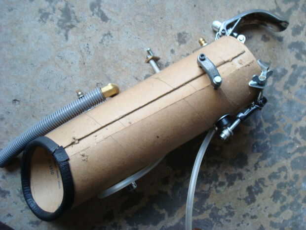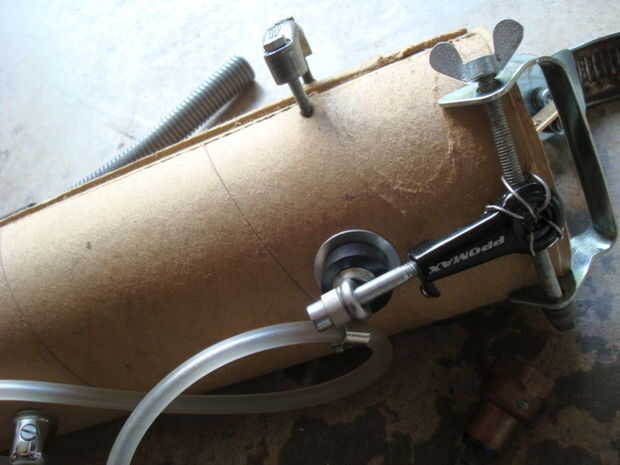 Al mismo tiempo, más ideas para los archivos adjuntos se me ocurrieron: una válvula de latón fue comprada junto con el PVC; Fondo allanaron nuestra caja de bits aleatorios plomería, añadiendo un flowsensor, algunos acanalado tubería, más tuberías, cables y varios soportes para mantenerlo todo en el dispositivo principal.